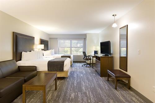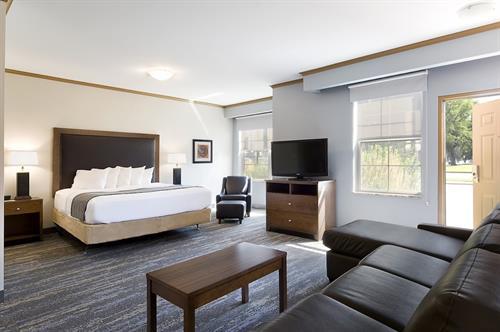 All our 79 guest rooms and suites are decorated in an elegant style with a touch of contemporary flavor. Our walkout guestrooms and suites provide immediate access to your vehicle or our backyard patio.